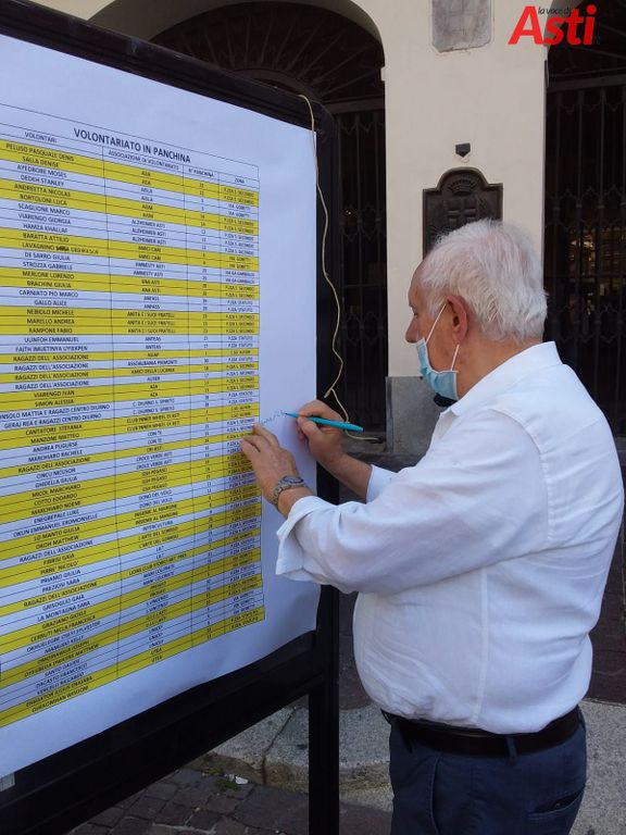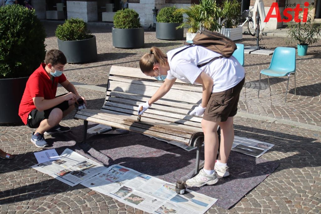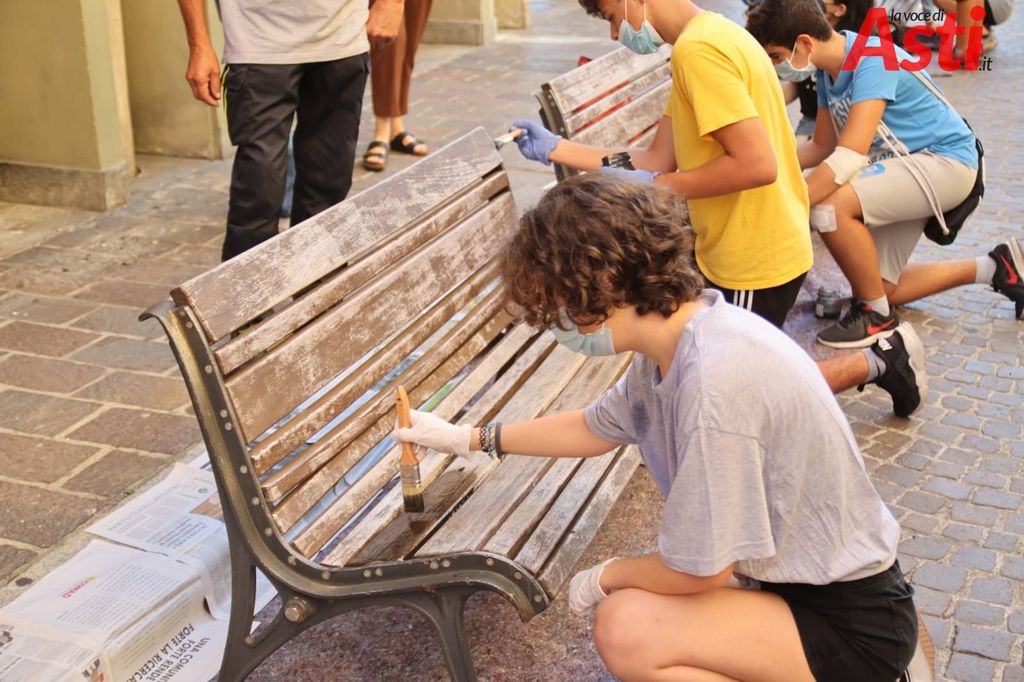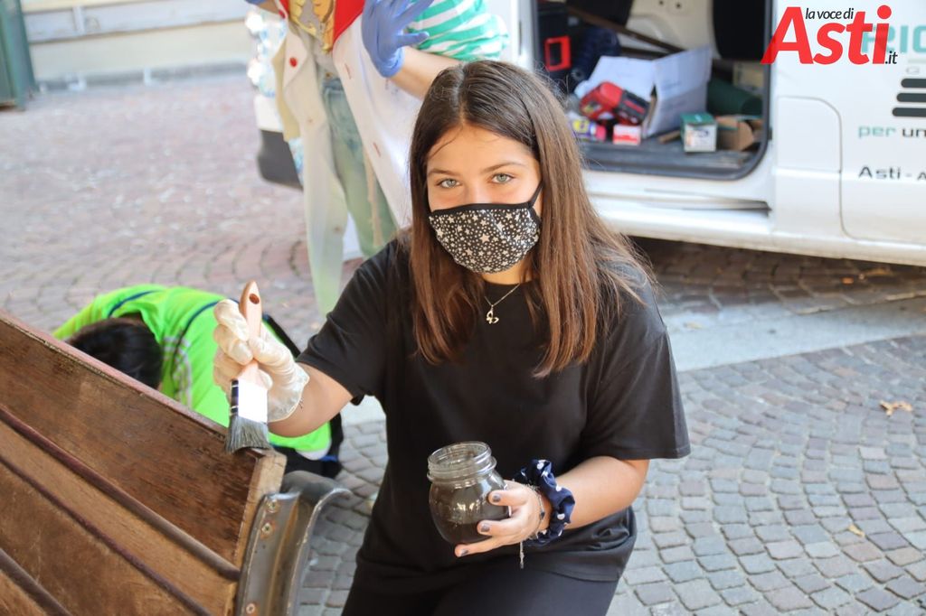 130 volontari tra i 14 e i 18 anni, oltre 100 rappresentanti di 36 associazioni, Comune di Asti, assessorato alle Politiche Sociali con la collaborazione degli assessorati alle Politiche Giovanili, ai Lavori Pubblici ed il CSVAA, hanno dato vita all'iniziativa "Volontariato in panchina", che nasce per ripristinare dall’incuria alcune panchine del centro storico della città.