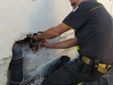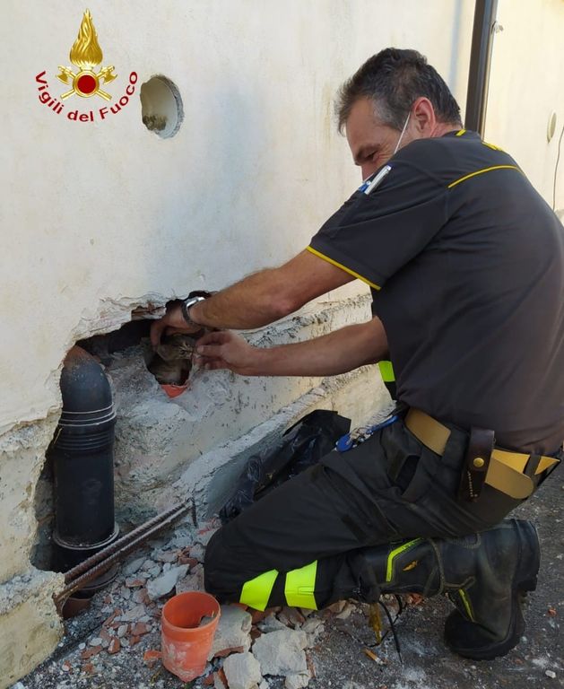 Per recuperare l’animale, che è in ottime condizioni, si è reso necessario spaccare muri e tubazioni