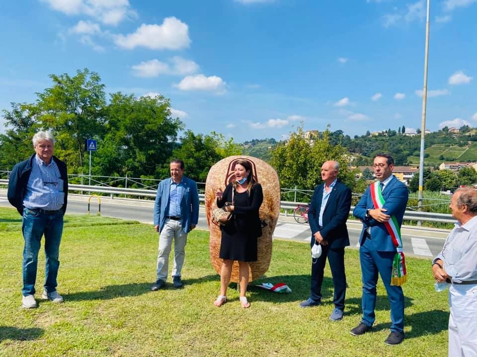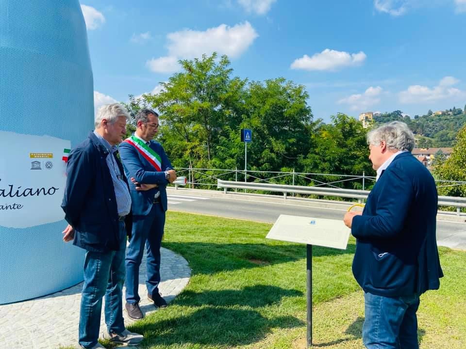 "La bottiglia, spiega il sindaco Paolo Lanzavecchia, già presente davanti alla sede delle Cantine Gancia, è stata rivisitata dotandola della nuova serigrafia dedicata all’Asti Spumante nella parte frontale, e in quella posteriore il logo del 50° sito Unesco a cui appartiene il nostro territorio.