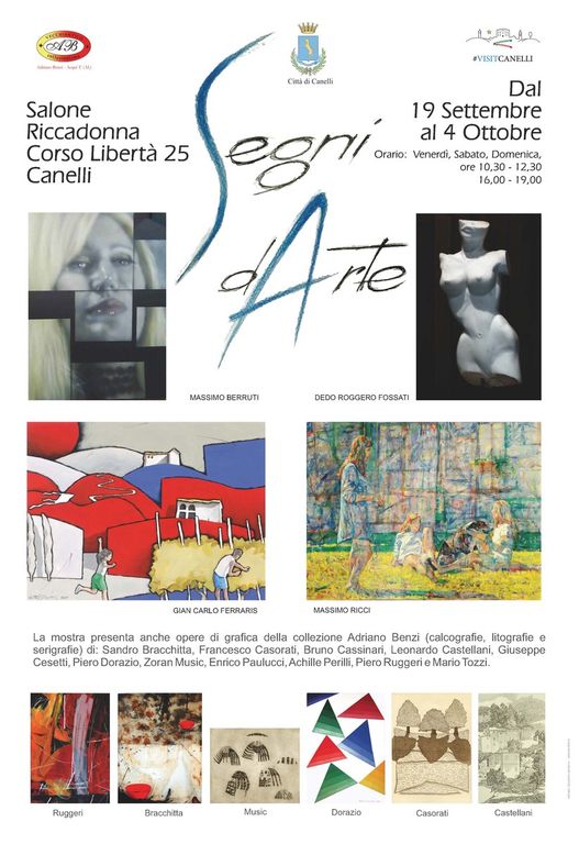 A Canelli dal 19 settembre al 4 ottobre si terrà presso il Salone Riccadonna, Corso Libertà 25 la mostra collettiva denominata “Segni d’Arte”.