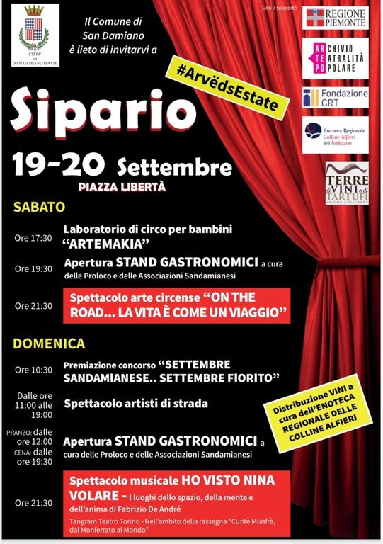 Altre date da segnare in calendario saranno quelle di sabato 19 e domenica 20, giornate in cui si svolgerà in paese la seconda edizione di “Sipario”, apprezzato appuntamento che in entrambe le giornate vedrà la partecipazione delle varie pro loco del concentrico e delle frazioni per quanto riguarda gli aspetti enogastronomici, oltre che di artisti di strada, giocolieri, intrattenimenti culturali e folkloristici per le vie del paese. Il tutto, ovviamente, nel pieno rispetto delle norme anti-Covid 19.
