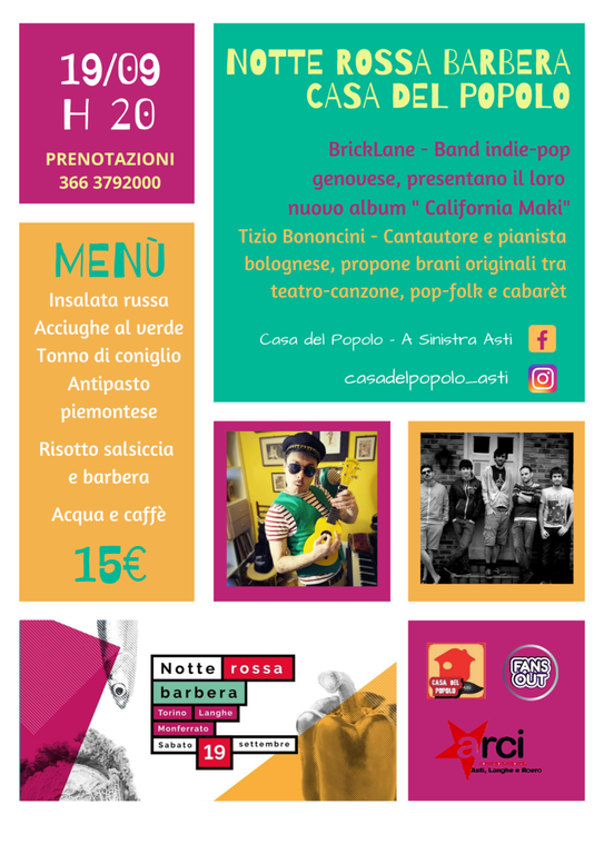 Sabato anche ad Asti verrà festeggiata, alla Casa del Popolo di via Brofferio, la “Notte Rossa Barbera”. Ovvero una "sagra diffusa" in diverse città piemontesi, tra cui Torino, Alba, Bra, Nizza Monferrato e, da quest'anno, anche Asti! Sarà una serata all'insegna della cucina tradizionale piemontese, della buona musica di giovani artisti emergenti e, ovviamente, del Barbera!
