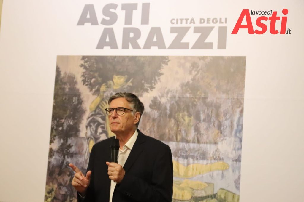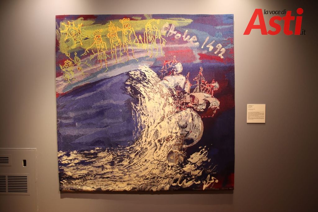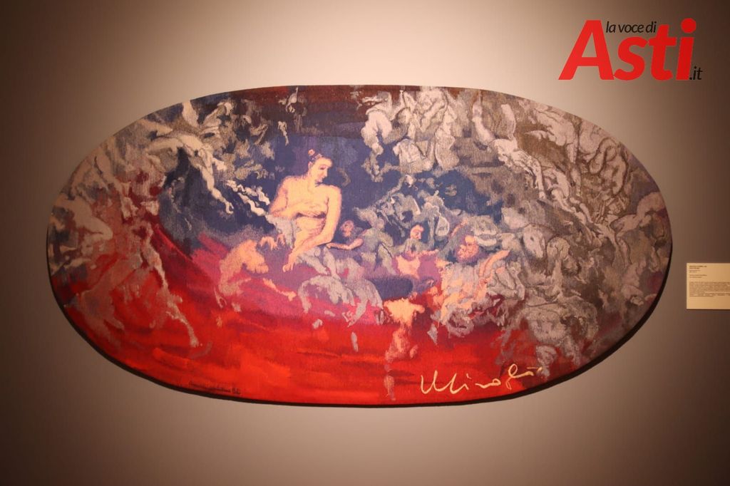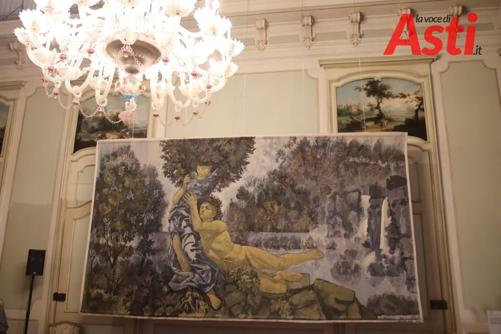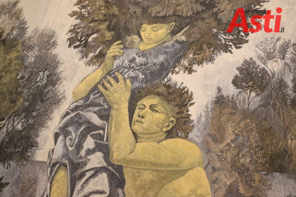 Andrea Rocco, direttore di Palazzo Mazzetti: "La mostra comprende una selezione bellissima, tra cui l'Apollo e Dafne del 1967 che fu realizzato in 9mila ore di lavorazione, un arazzo reduce dai grandi successi delle grandi navi italiane. Si arriva negli anni 2000, le due eccellezze astigiane, famose per usare la tecnica ad alto liccio, con gli ultimi arazzi, prodotti da Vittoria Montalbano, si dedicano anche alla 'fiber art', fibre vegetali che danno nuovi effetti tonali".