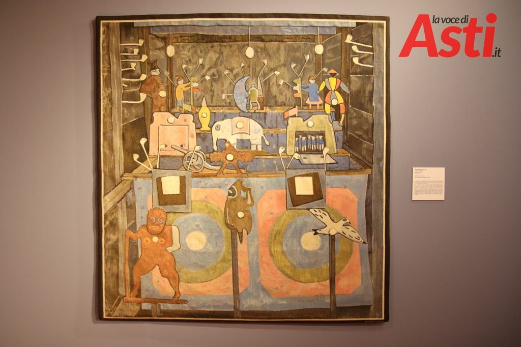 In mostra grandissimi esempi realizzati da questi laboratori che hanno sia interpretato capolavori del Novecento che avviato collaborazioni con noti artisti italiani: gli arazzi Apollo e Dafne(1967) di Corrado Cagli, Composizione astratta(1968) e Pittura Murale(1980) da Luigi Spazzapan, Teatro delle Marionette da Paul Kleee Tiro al bersaglio(1986) da Felice Casorati e sempre dall’arazzeria Scassa proviene Composizione astratta(2005) di Paolo Conte.