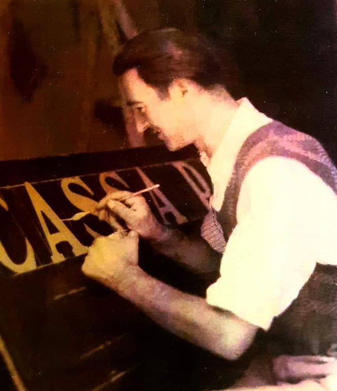 Eros Pessina oggi a capo dell’azienda, in seguito alla prematura scomparsa del padre Elvio, con la mamma Eralda e la moglie Nadia racconta: “Mio bisnonno Giovanni, originario di Milano, tra fine ‘800 e inizio ‘900 realizzava le insegne per i negozi. La sua passione di pittore di ex voto l’ha portato a fondare l’azienda che ancora oggi porta avanti il nome di famiglia. Una parte dei dipinti ex voto del mio bisnonno sono attualmente conservati nel santuario di Nostra Signora della Moretta ad Alba”.