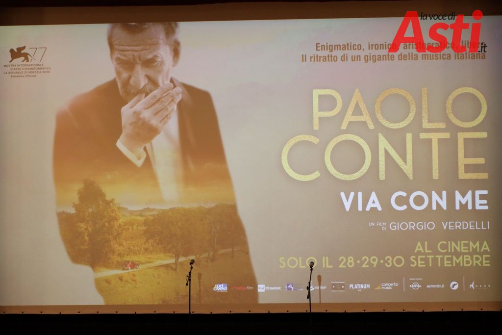Ieri sera anteprima al Teatro Alfieri e Sala Pastrone di Asti del docufilm diretto da Giorgio Verdelli, “Paolo Conte, Via con me”, dopo il successo di pubblico e critica alla Mostra del Cinema di Venezia.