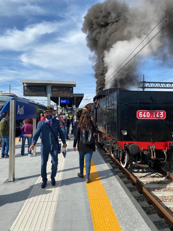 A bordo treno è stato registrato il tutto esaurito con oltre 200 viaggiatori, ma le richieste di partecipazione hanno sfiorato il migliaio. Il treno storico, trainato dalla locomotiva a vapore Gr.640.143, è partito dalla stazione di Torino Porta Nuova diretto a Canelli per “Canelli città del Vino” con un ricco programma turistico che prevedeva degustazioni in piazza, visita alle cantine e tanto altro.