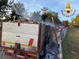 Carico di legna, il mezzo ha preso fuoco per cause ancora da accertare.