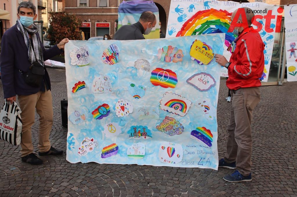 La manifestazione si è svolta in piazza Statuto in completa sicurezza. Tanti i partecipanti. Grandi e piccini, con indosso la mascherina, distanti ma uniti, hanno comunicato a tutti il valore della pace e della fratellanza.