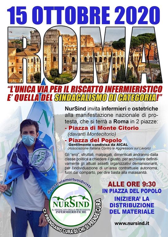 "Dopo aver manifestato nelle piazze di tutte le regioni italiane, il Nursind, come aveva promesso, porta gli infermieri a Roma. Manifesteremo con attenzione e nel rispetto delle regole e delle normative anti covid per chiedere: un aumento delle retribuzioni, la valorizzazione della professione e condizioni di lavoro dignitose.