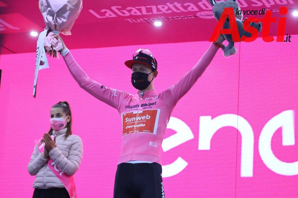 Dietro Cerby hanno transitato sul traguardo Campenaerts e Mosca. Più staccato il gruppo della maglia rosa Wilco Kelderman, che comunque mantiene il suo primato con 12" di vantaggio su Jai Hindley e 15" su Geoghegan Hart.