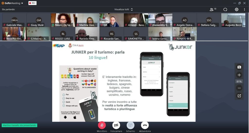 Questa mattina, nel corso di una conferenza stampa rigorosamente “telematica” in ottemperanza delle norme anti covid, Comune di Asti e Asp hanno illustrato i dettagli della collaborazione con il team di lavoro che ha sviluppato “Junker” – app leader in Europa in questa specifica nicchia settoriale e disponibile negli store Android, iOS e Huawei – , che può contribuire in modo rilevante ad una più corretta e diffusa raccolta differenziata dei rifiuti.