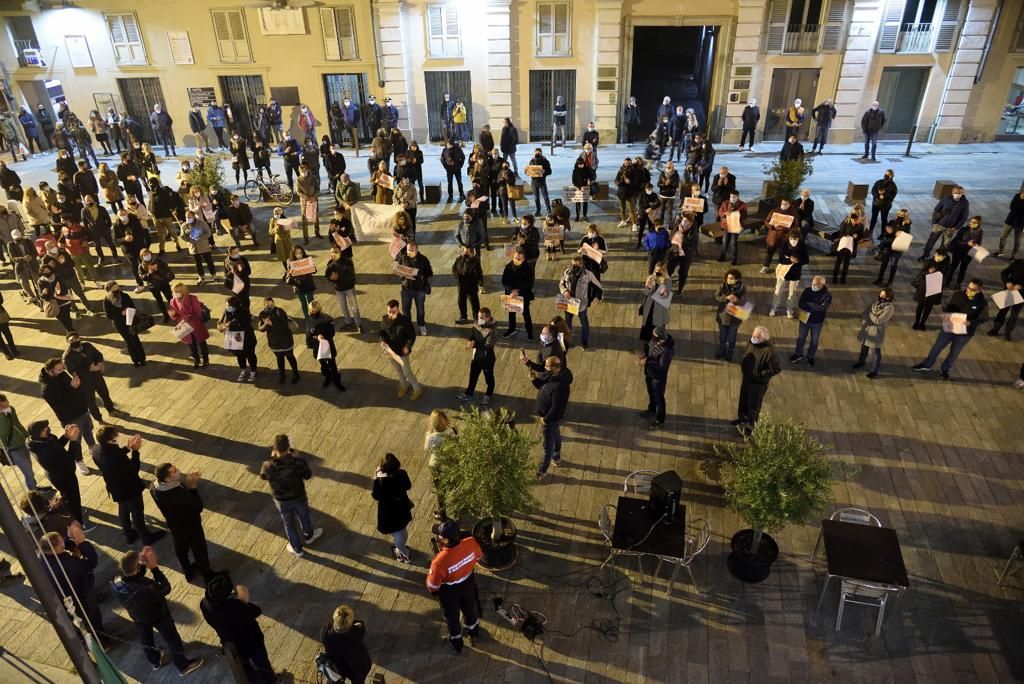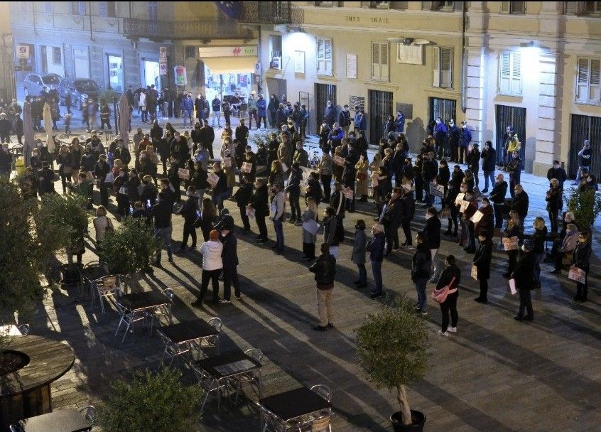 Forza e anche rabbia, ma senza mai trascendere, rispettosi delle distanze di sicurezza con mascherina, ma indossando anche l'amarezza di aver tentato di tirare fuori la testa dopo il lockdown primaverile e avere riaperto dopo aver ottemperato a decine di regole per mettere in sicurezza i locali e oggi di novo spenti, per ora, alle 18 di sera.