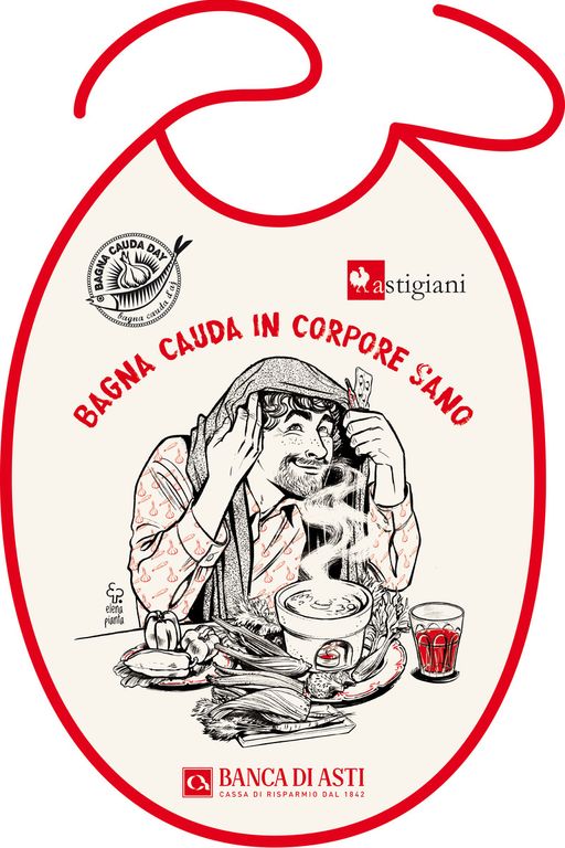 In omaggio a tutti i bagnacaudisti andrà il bavagliolone d’autore in stoffa, stampato in edizione limitata con il motto “Bagna cauda in corpore sano” e il contributo del gruppo Banca di Asti.
