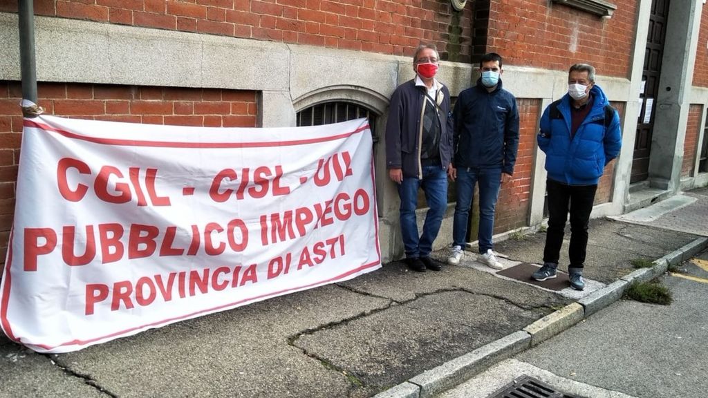 Nell’impossibilità di effettuare il previsto presidio di fronte al Municipio, questa mattina i rappresentanti di CGIL CISL e UIL del pubblico impiego, mentre il personale dipendente della casa di riposo è in sciopero contro la privatizzazione, hanno installato lo striscione sotto alla struttura e successivamente sotto al palazzo del Comune di Asti.