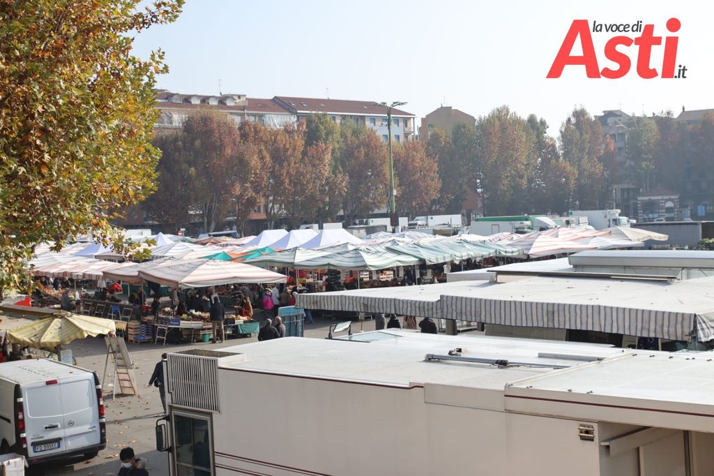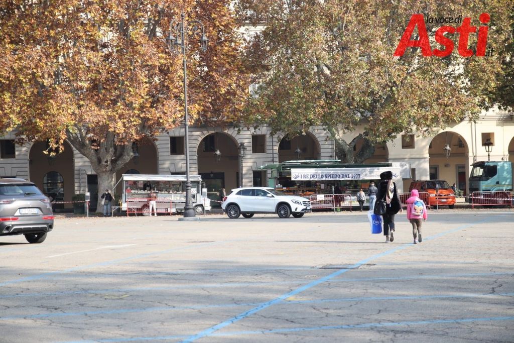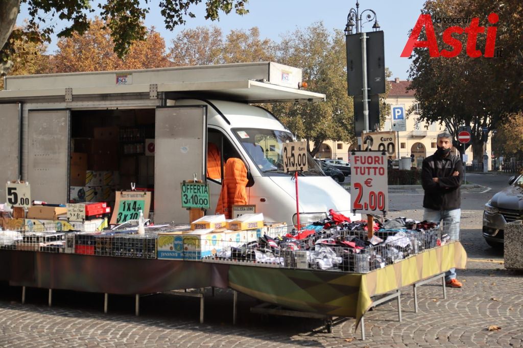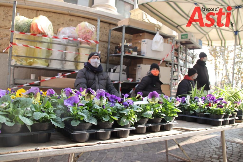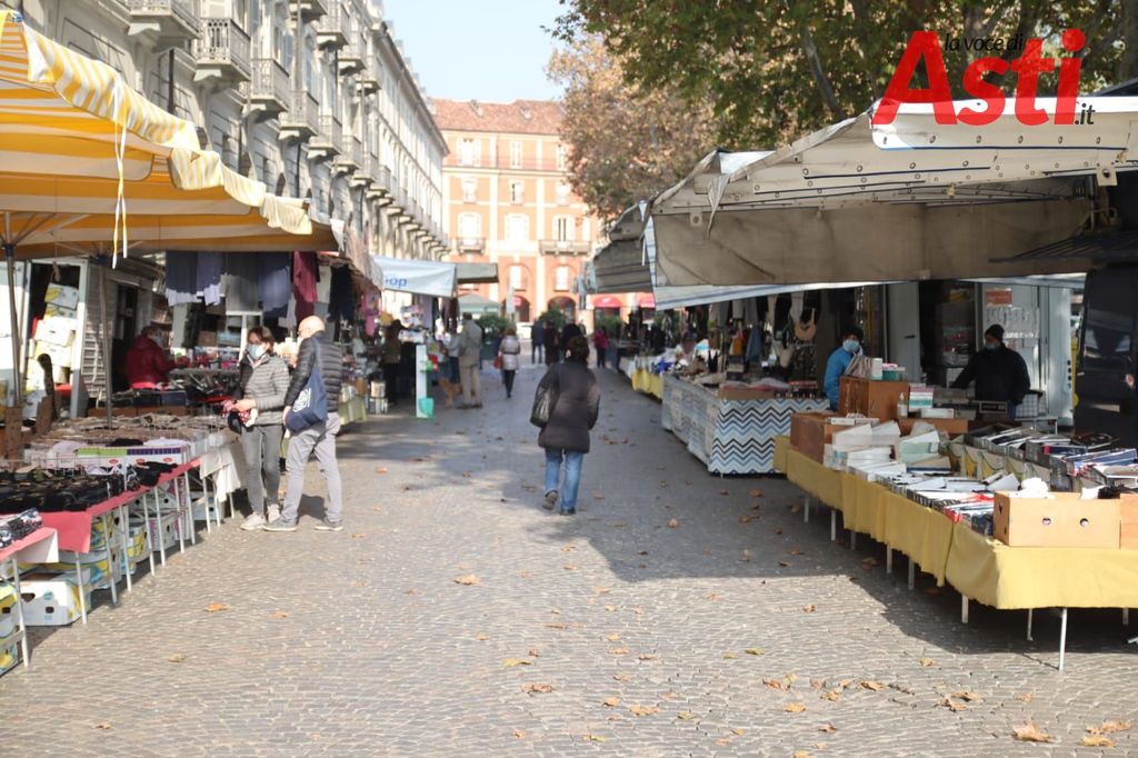 In piazza Alfieri i due banchi di alimentari e gli altri nell'isola pedonale. In piazza Libertà le caramelle e i banchi di semi, piante, fiori.