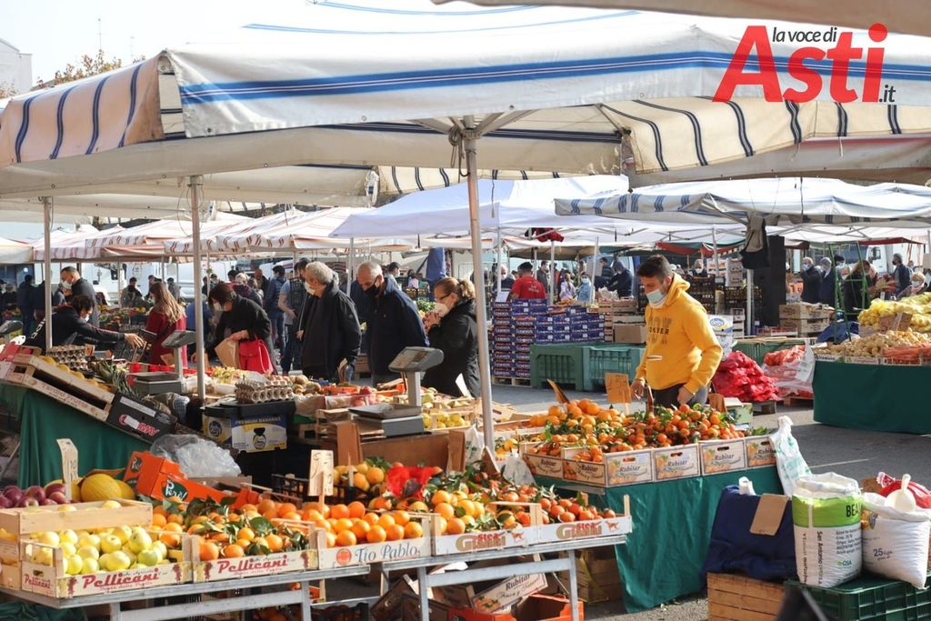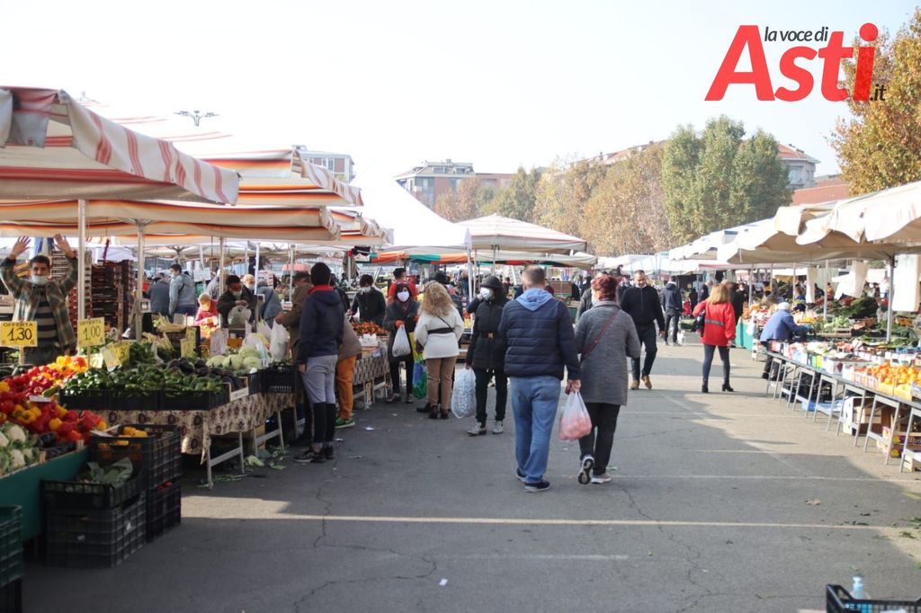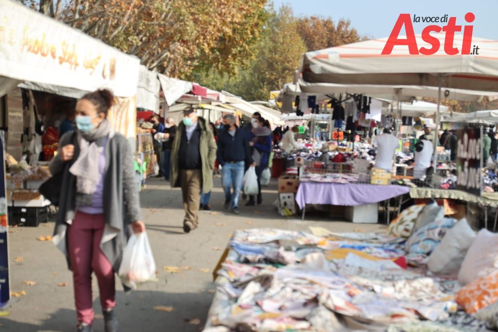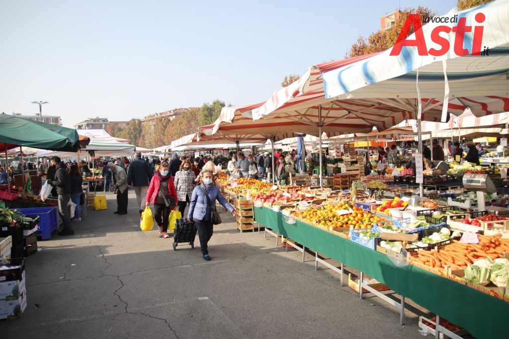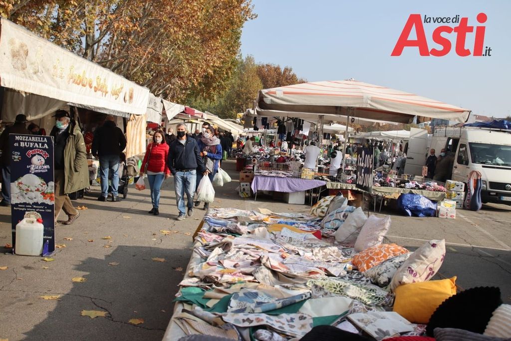In piazza Alfieri i due banchi di alimentari e gli altri nell'isola pedonale. In piazza Libertà le caramelle e i banchi di semi, piante, fiori.