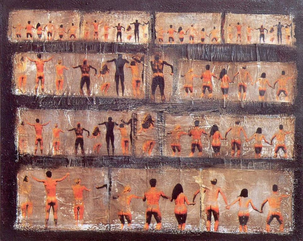 In esposizione anche i collage della Speranza: "Sogno di armonia", che raffigura un uomo e una donna abbracciati in una danza unica" e "Infanzie", che ritrae uomini e donne nudi, vestiti solo di colori, che corrono verso l'Infinito.