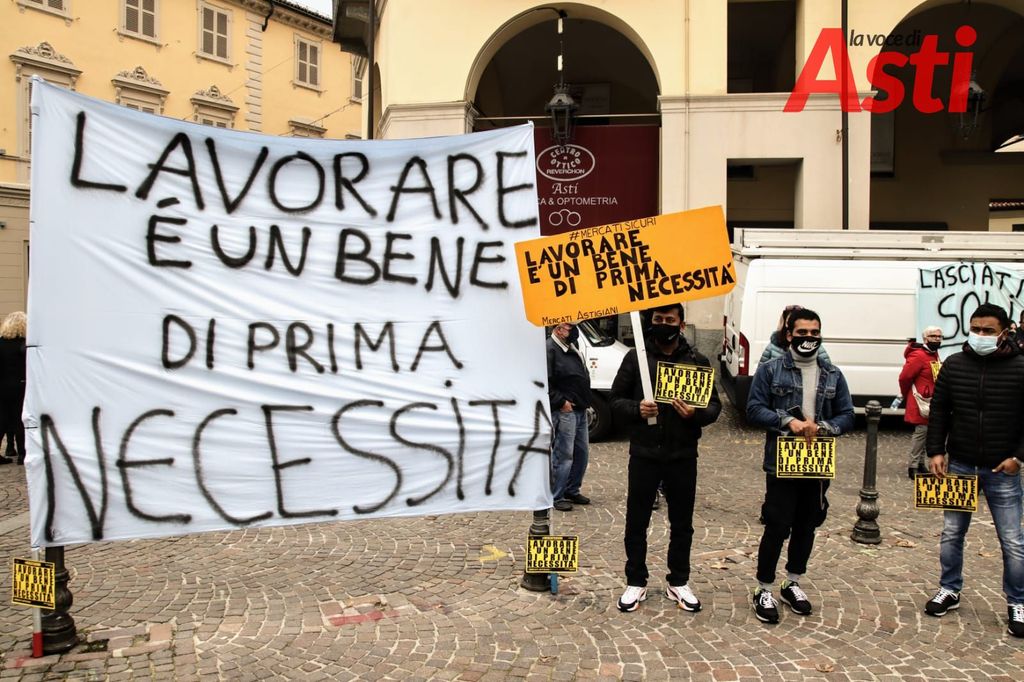 Con questo slogan tanto semplice quanto dannatamente veritiero, gli ambulanti astigiani questa mattina sono scesi in piazza Libertà, contro l'ultimo dpcm.