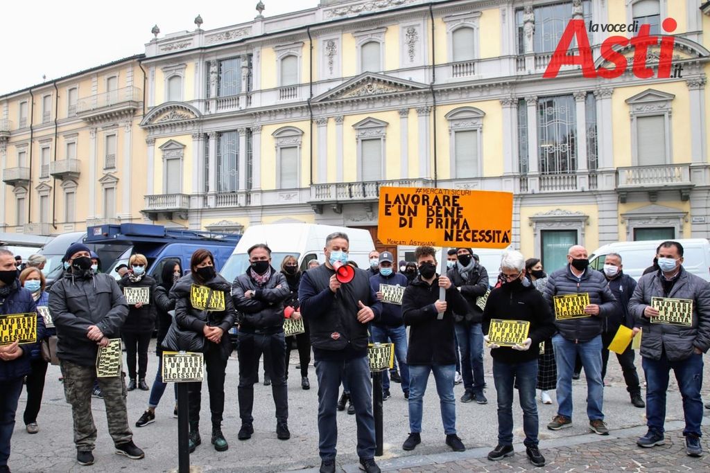 "Queste decisioni fanno male al tessuto commerciale, ma anche alla città. Vedere Asti il sabato mattina così spenta, tetra e insicura fa male", hanno gridato al megafono i manifestanti.