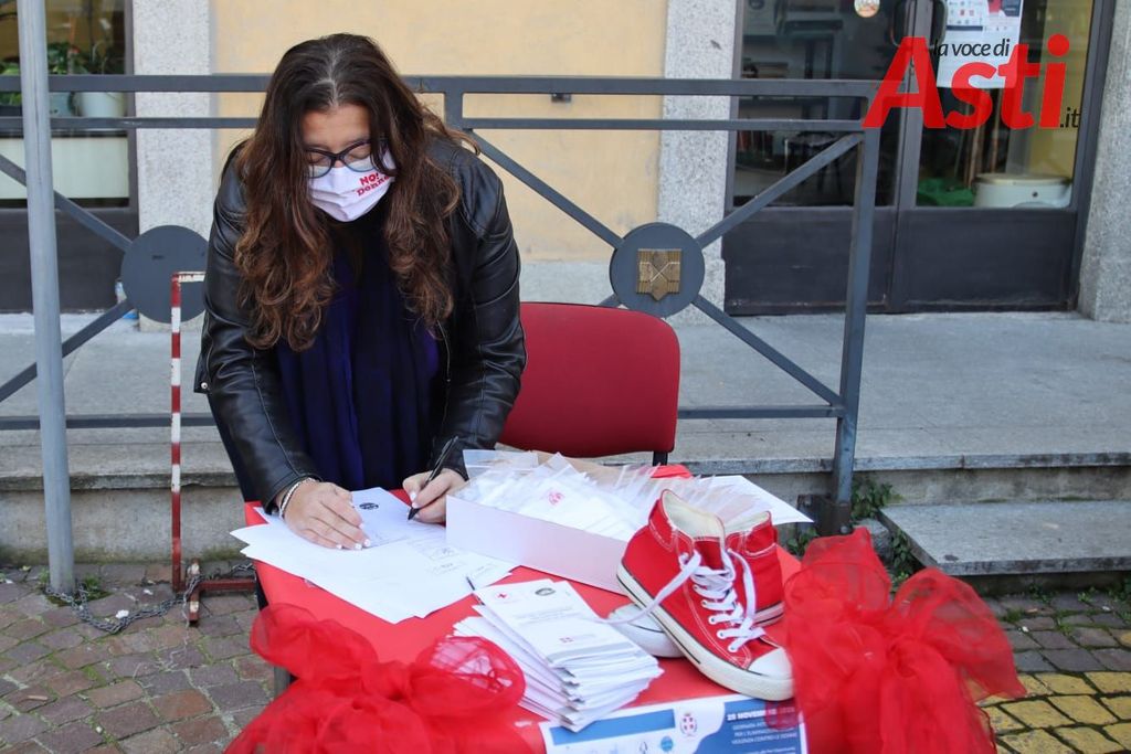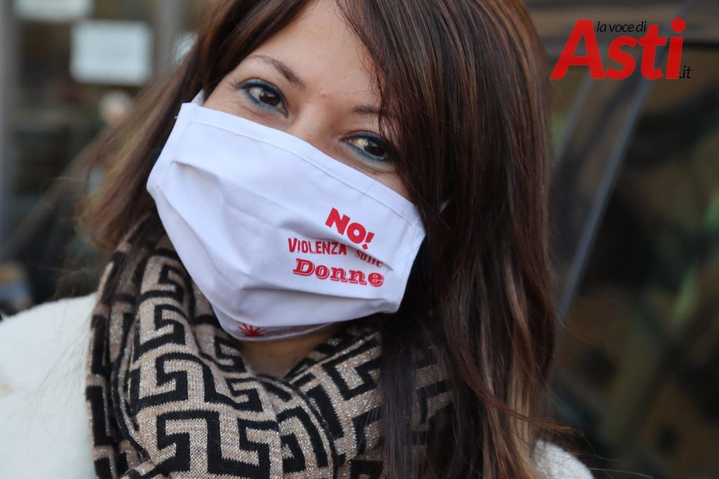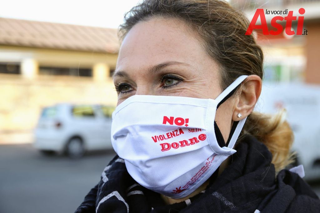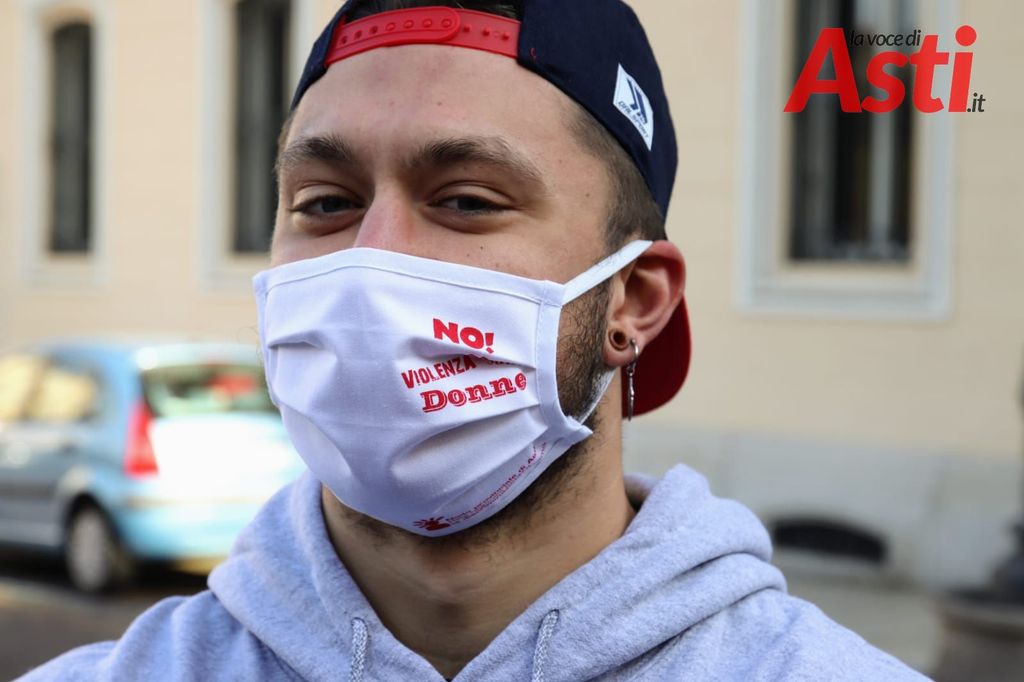 “Perché un giorno solo non basta”, da oggi ad Asti in piazza Roma alla Banca del Dono, sono in distribuzione le mascherine 'contro la violenza'.
