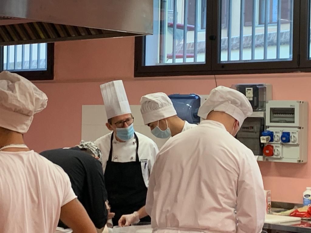 Piatti di classe all'Istituto Alberghiero Penna di San Damiano, con lo chef Alessandro Pavesio dell'Associazione Cuochi Italiani che questa mattina, nella cucina dell'Istituto, ha preparato piatti di alta classe con una rappresentanza di studenti.