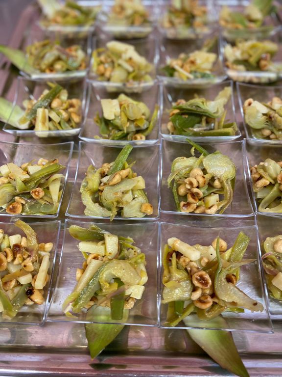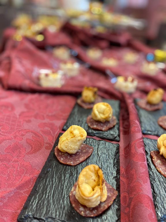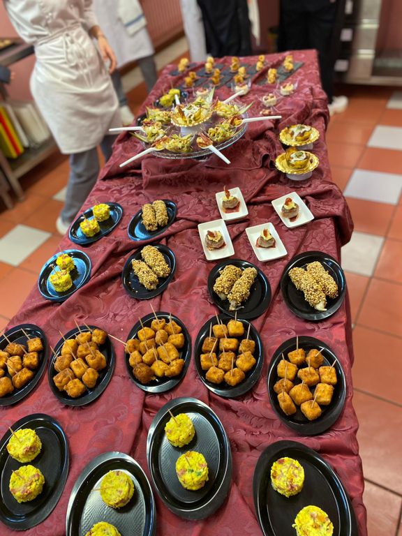 I giovani aspiranti chef si sono dedicati alla preparazione di piatti di gran classe: dai tortellini di patate, porri e Raschera fritti in cialda di salame, ai mini hamburger di fassona, mela di maziano, insalata di carciofi, nocciole e Bra duro, fonduta fritta, cubo di fassona in manto di nocciole e Bra.