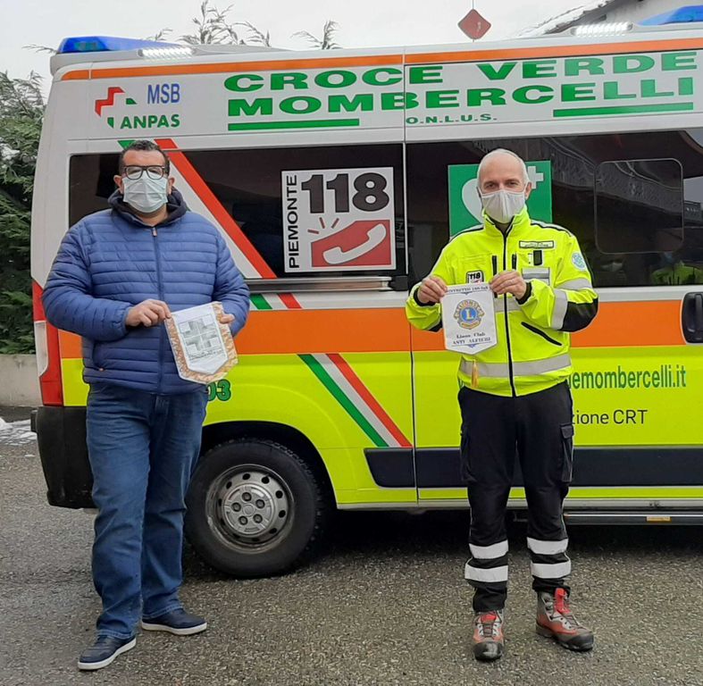 Questa mattina – Walter Valente e Giovanni Boccia, rispettivamente presidente e tesoriere del Lions Club Asti Alfieri – hanno consegnato presso la sede operativa della Croce Verde di Mombercelli un’offerta in denaro raccolto tra i soci che verrà utilizzata per l’acquisto di un sanificatore per l’emergenza Covid-19.