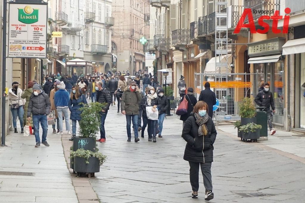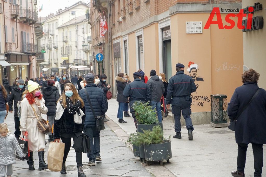 Il giorno dopo il nuovo decreto (natalizio appunto) che istituisce la Zona Rossa nei festivi e prefestivi compresi tra il 24 dicembre e il 6 gennaio, Asti vede un discreto movimento di persone in giro per gli ultimi acquisti natalizi.