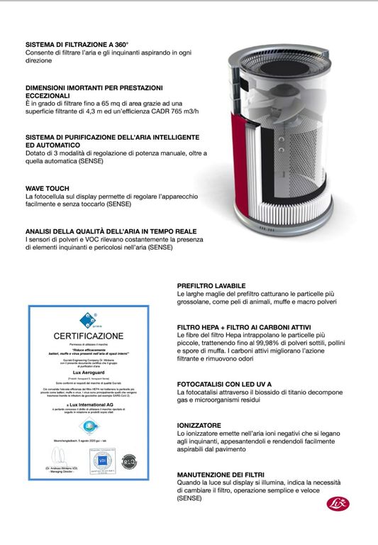 Grazie anche ai progressi ed alla ricerca di un Gruppo operante a livello Internazionale, la Lux International ha concepito e messo sul mercato l'ultima evoluzione di un apparecchio, l’Aeroguard Sense, dotato di 5 tecnologie integrate frutto di decenni di ricerca e sviluppo applicata al tema del inquinamento indoor.
