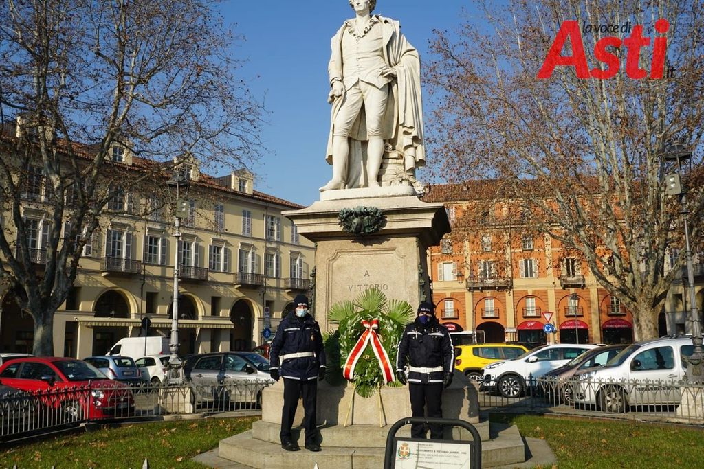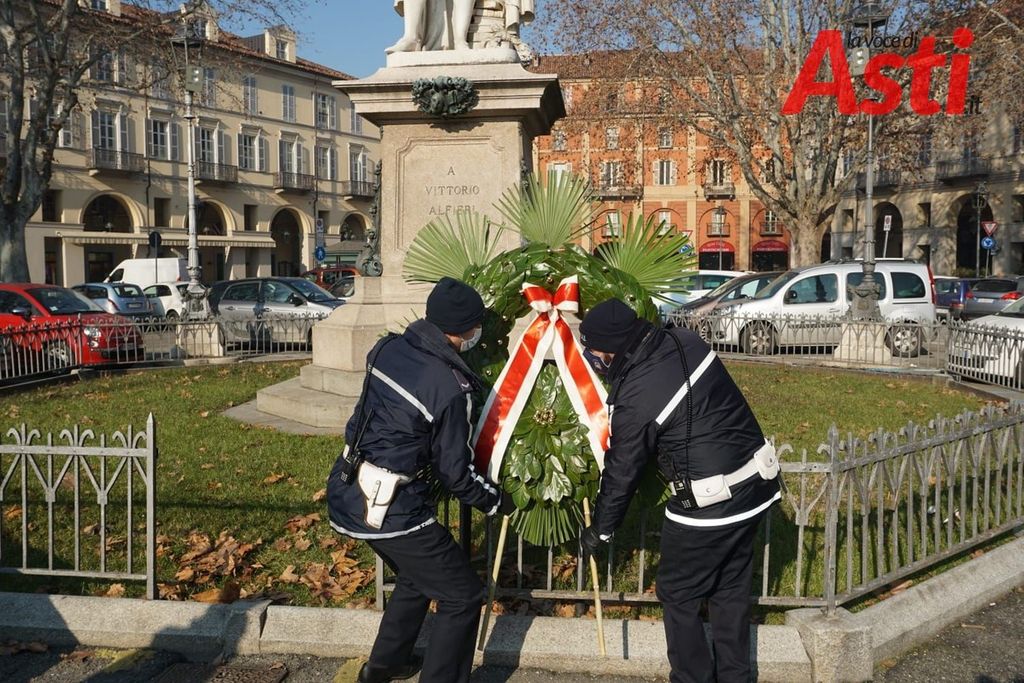 Niente cerimonia che abitualmente vedeva presenti autorità e studenti ma "solo" la presenza del sindaco Maurizio Rasero, l'assessore alla Cultura Gianfranco Imerito e Carla Forno della Fondazione Centro Studi Alfieriani.