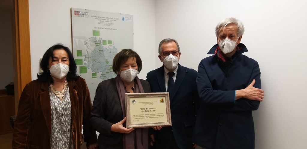 La giornata di oggi è stata dedicata all'importante tema, attraverso un webinar online con gli addetti ai lavori. Prima dell'incontro si è svolta in presenza una cerimonia ridotta, per la consegna della targa di "Città del Sollievo" al Comune di Asti, alla presenza di Mario Santarelli, consigliere della Fondazione Nazionale Gigi Ghirotti Onlus e dell'assessore comunale alle Politiche Sociali, Volontariato e Sanità, Mariangela Cotto.