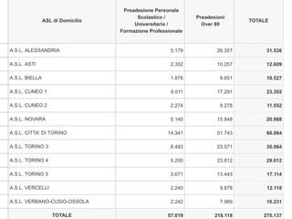 In allegato il file con la suddivisione a livello provinciale delle preadesioni alla campagna vaccinale degli over 80 e del personale scolastico, universitario e della formazione professionale registrate finora in Piemonte.