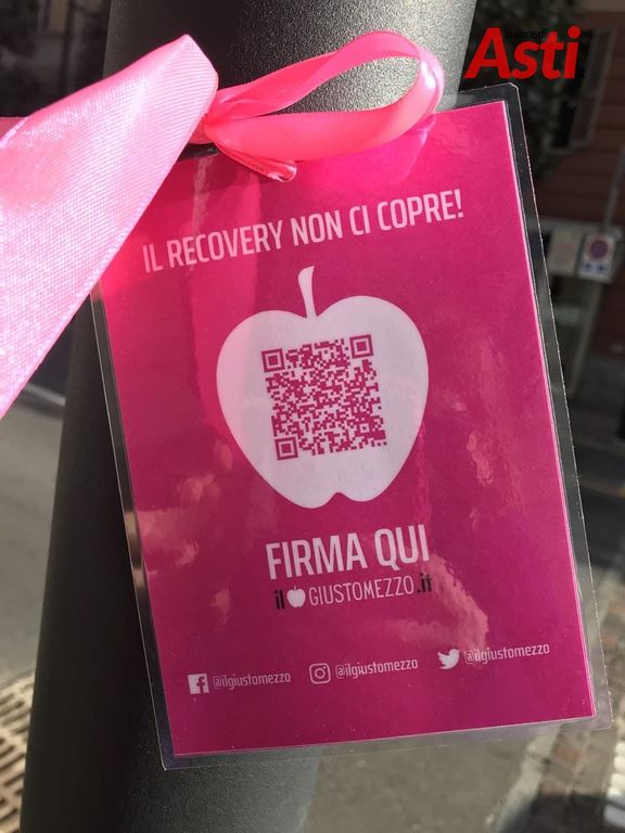 Gli avvisi sono in realtà cartoline plastificate, appese con nastrini rosa a pali, cartelli ecc, con un QR code da scannerizzare per sottoscrivere la petizione rivolta al Governo, con cui si chiede di usare metà dei soldi messi a disposizione dall'Unione Europea con il Recovery Fund per politiche integrate e investimenti moltiplicatori sulla parità di genere e l’occupazione femminile. Tra gli obiettivi anche i congedi di paternità e il superamento del gap salariale tra uomo e donna.
