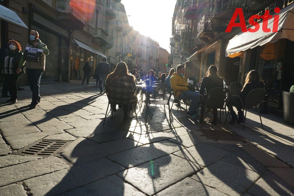 Ieri un'Asti soleggiata ha mostrato tante persone in giro, quasi volessero fare più cose possibili, famiglie in giro, gruppi di amici, quasi tutti con il rispetto delle mascherine, meno dei distanziamenti.