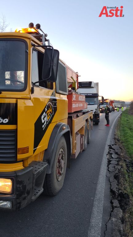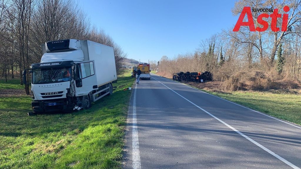Si tratta di uno scontro frontale tra due mezzi pesanti lungo la provinciale della Valle Versa, all'altezza di Colcavagno, nel comune di Montiglio Monferrato.