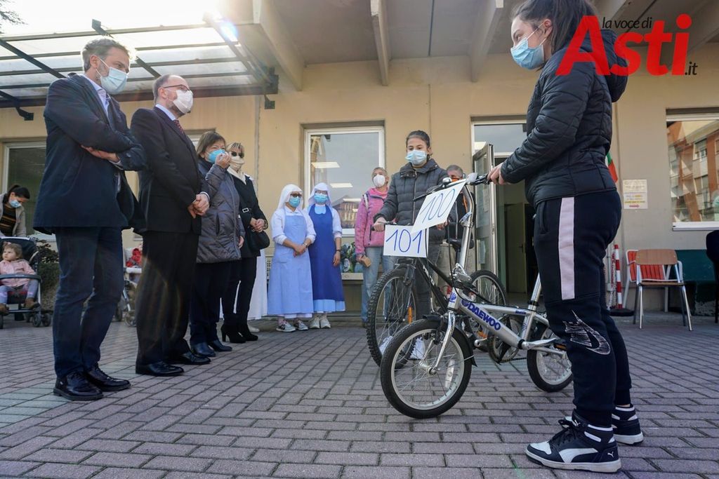 Questa mattina la responsabile della mensa, suor Luigina ha consegnato la 100esima e 101esima bici alla presenza del sindaco Maurizio Rasero, dell’assessore alle Politiche Sociali Mariangela Cotto, della presidente dell’associazione “Il Dono del Volo” Caterina Calabrese, del presidente dell’associazione “One more Life” Arnaldo Malfatto e del presidente dell’associazione “Sensa Fren” Aldo Vergano. Era presente anche l'onorevole Andrea Giaccone