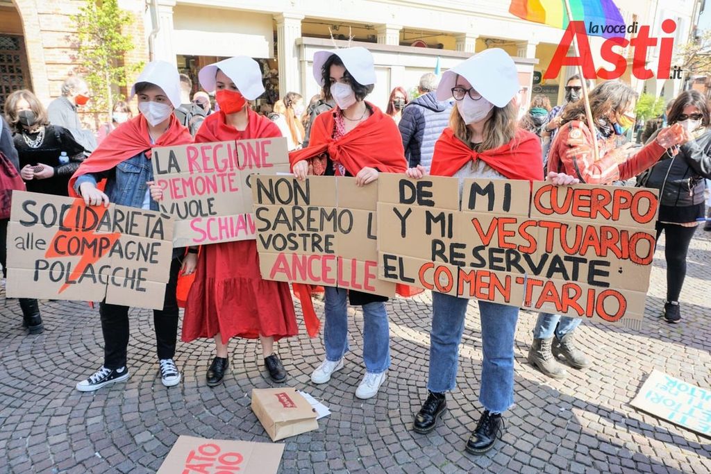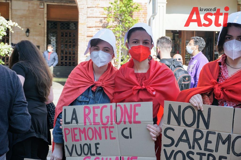 Un presidio a difesa della legge sull'aborto si è svolto oggi pomeriggio, sabato, in piazza Statuto ad Asti.