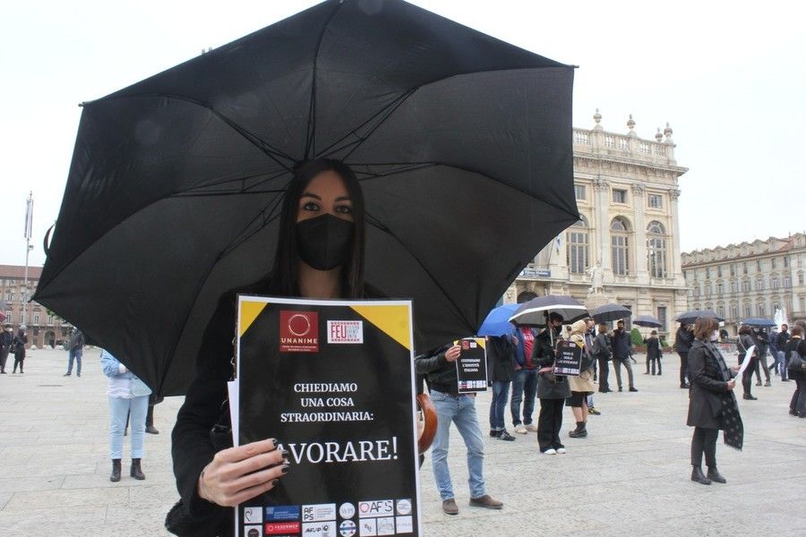 Si sono ritrovati - come molti prima di loro - sotto le finestre della Regione in piazza Castello. Chiedono certezze, soprattutto una data per ripartire. Una manifestazione in contemporanea con altri 11 capoluoghi di Regione, organizzata da UNANIME – la Confederazione delle Associazioni di categoria del settore Matrimoni ed Eventi –, in collaborazione con Filiera Eventi Unita e, per la piazza di Roma, con Insieme per il Wedding. Una cerimonia malinconica, con tutti i partecipanti vestiti di nero a manifestare un lutto per una situazione ormai insostenibile.