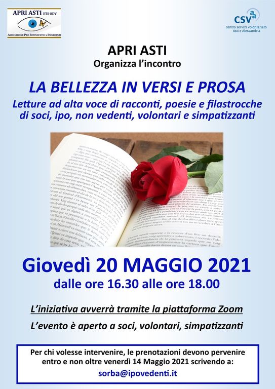 Per chi volesse seguire gli incontri può richiedere link di Zoom attraverso il seguente contatto: asti@ipovedenti.it