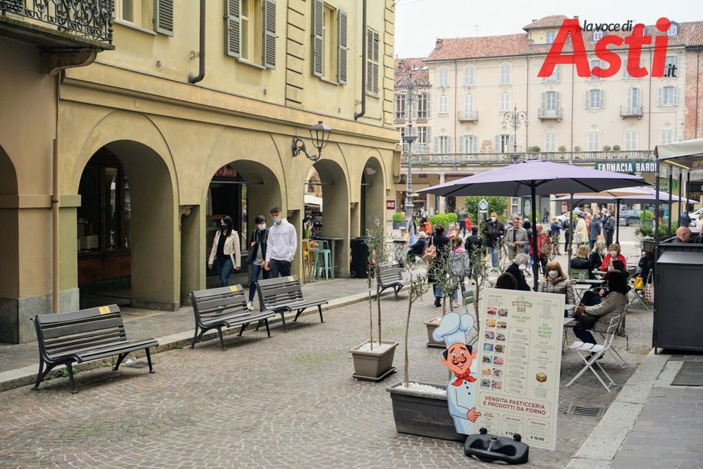 Il mercato cittadino è regolarmente presente in piazza Alfieri, piazza Libertà e piazza del Palio. Alcuni negozi del centro hanno deciso di tenere ugualmente aperto, almeno per mezza giornata. Diversi gli astigiani che hanno scelto di trascorrere una giornata di relax al museo, uno dei luoghi che, con il ritorno della zona gialla, ha riaperto le porte a cittadini e visitatori.