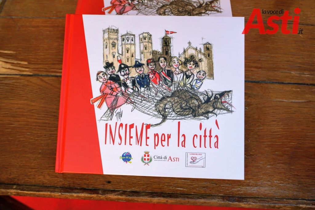 Un cuore grande con le mani delle oltre settanta associazioni presenti ad Asti e i simboli cardine di una città che sa aiutare e dove le tante iniziative hanno spesso aiutato a rialzarsi quando non c'erano spiragli per guardare avanti.