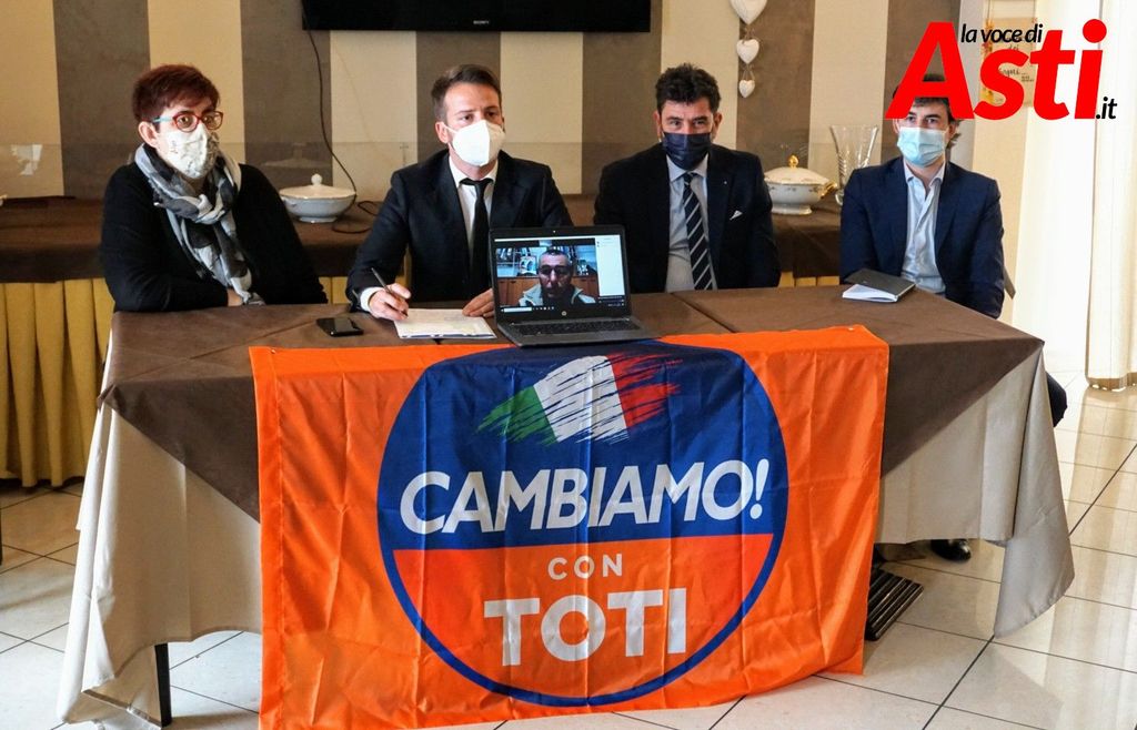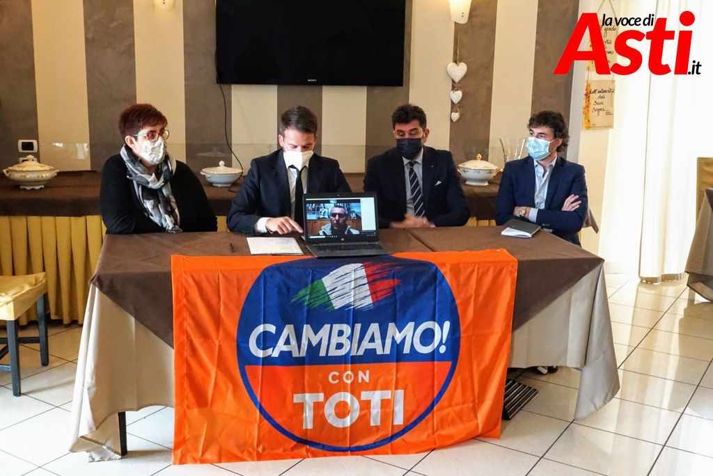Questa mattina, nel corso di una conferenza stampa presso il Mini Hotel di corso Alessandria, è stata ufficialmente presentata la ‘squadra’ astigiana di “Cambiamo con Toti”, movimento politico promosso dal governatore della Regione Liguria che vede nel Senatore Massimo Berutti, il quale ha partecipato in videocollegamento causa un’indisposizione, il coordinatore regionale.