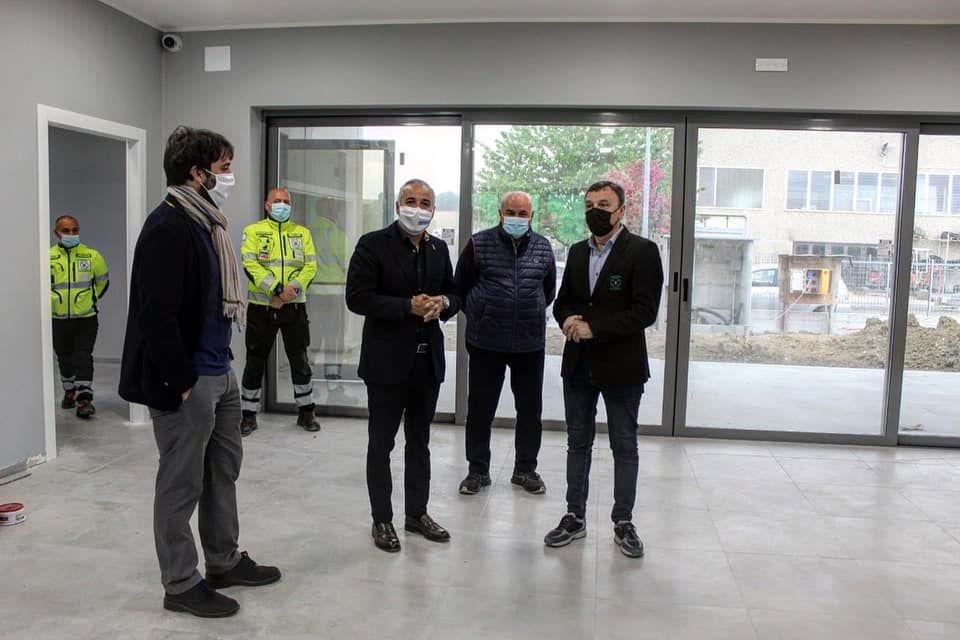 Sull'ampio terreno sono state realizzate due strutture: una di circa 1.000 metri per il ricovero dei mezzi (che sono, ad oggi, una ventina) e un’altra, di circa 850 metri quadrati, per la sede operativa. La nuova struttura è anche ecologica ed ecosostenibile. E' stato installato, infatti, un impianto fotovoltaico da 30 kilowatt, che la rende fondamentalmente autonoma.