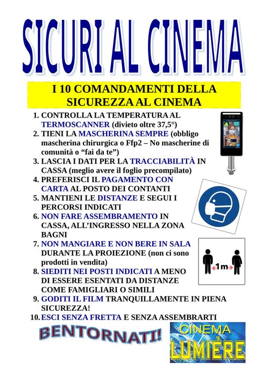 E’ possibile – per quanto non strettamente necessaria, poiché i posti a sedere sono stati sanificati e distanziati secondo le prescrizioni – prenotare contattando il cinema.