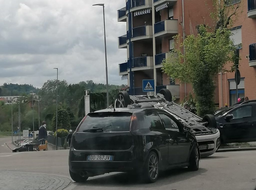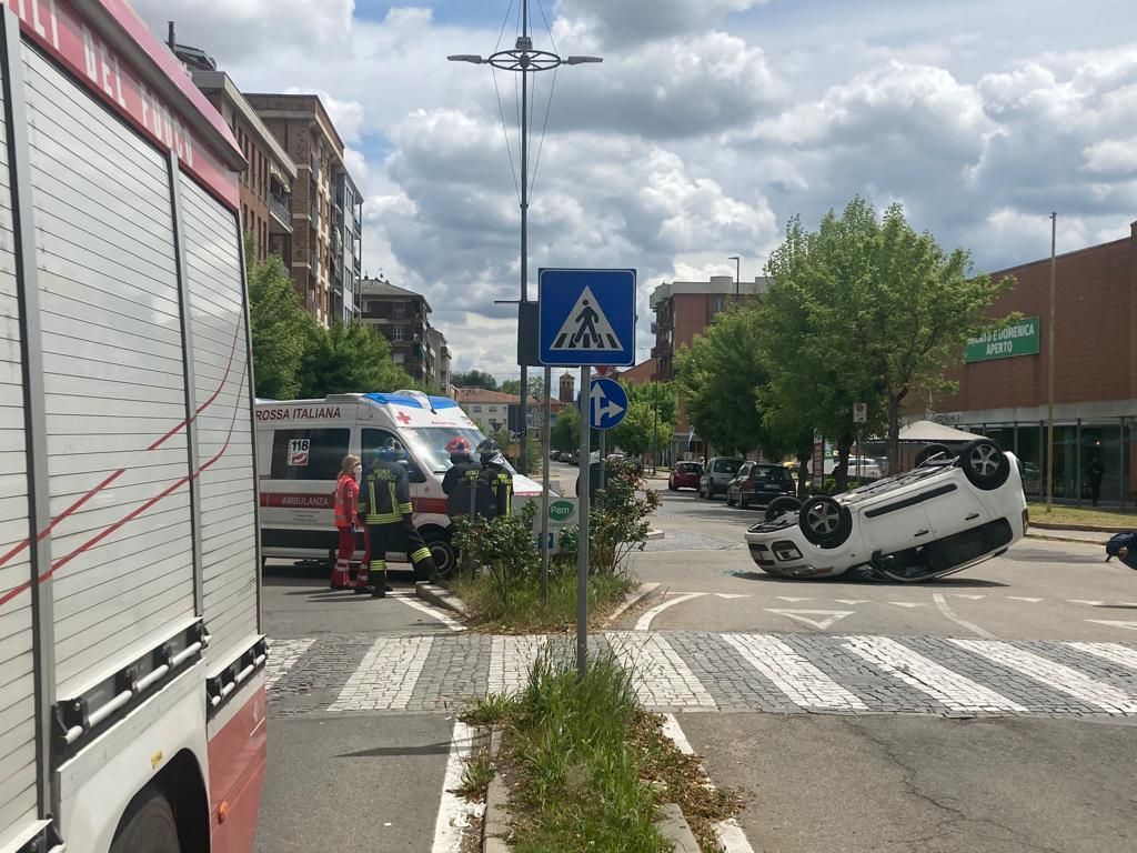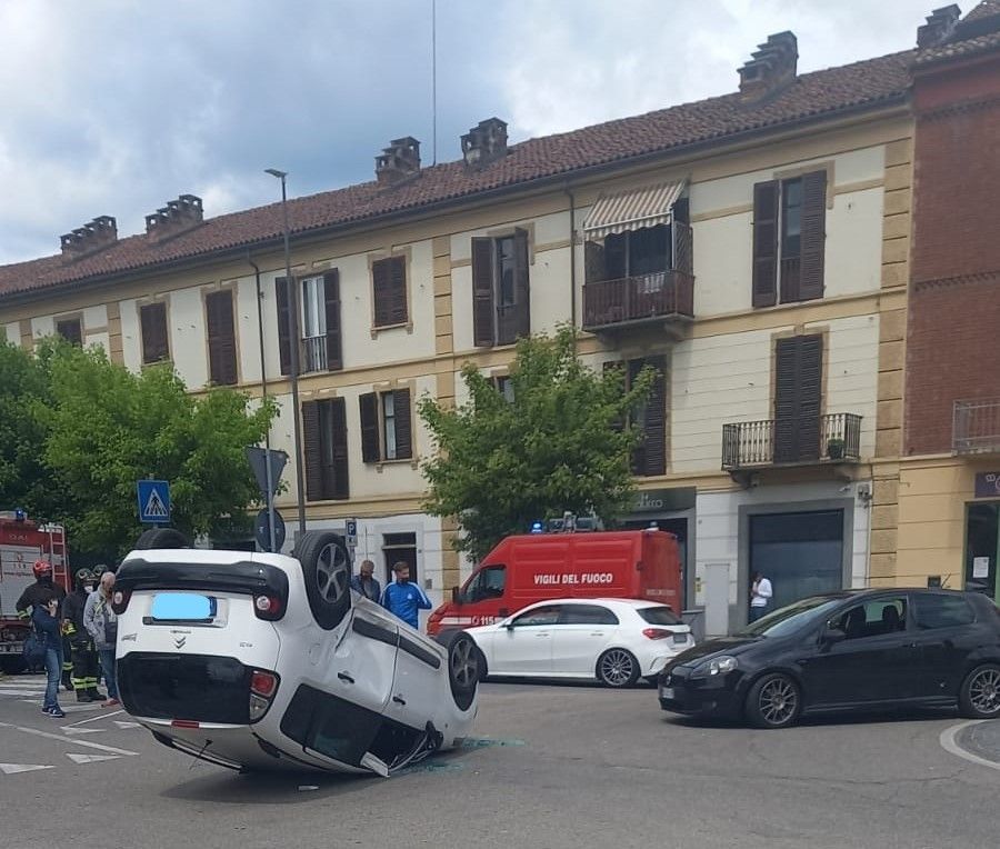 Spettacolare incidente, ma per fortuna senza conseguenze troppo gravi, all'ora di pranzo ad Asti. Il sinistro è avvenuto in corso Torino all'angolo con via Corridoni.