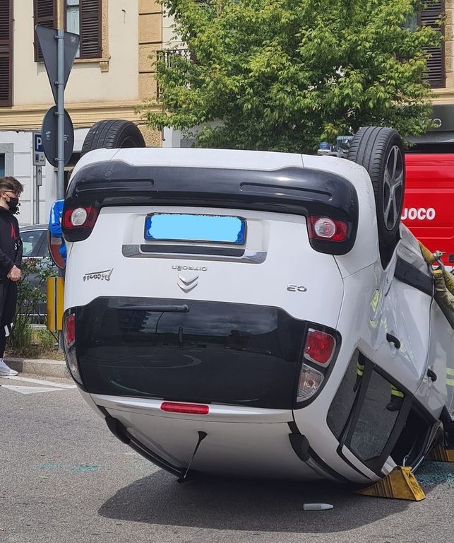 Una vettura si è ribaltata e il conducente è stato estratto grazie all'intervento di Vigili del fuoco e sanitari del 118. Arrivata anche la Polizia locale