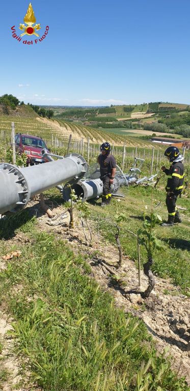 Da circa un’ora i vigili del fuoco del Comando di Asti sono impegnati a San Damiano dove, in frazione Gorzano, un ripetitore telefonico alto oltre 30 metri è crollato in un vigneto.