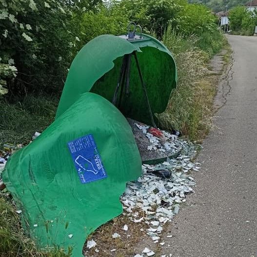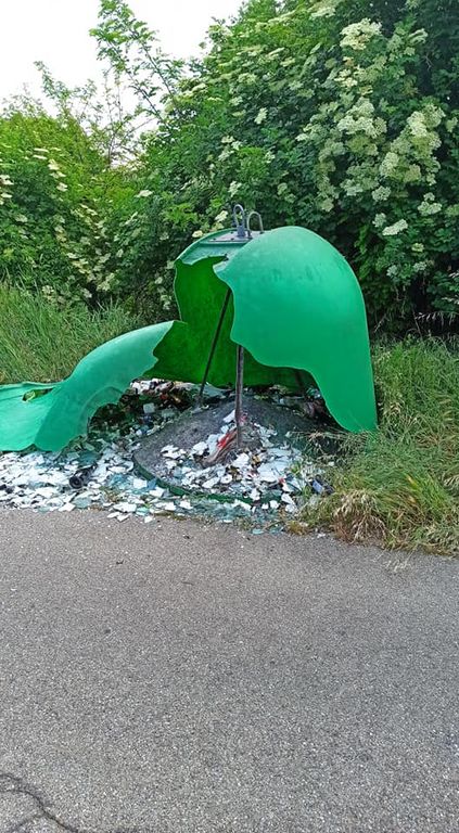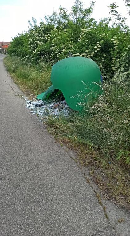 Ieri un'auto a forte velocità ha distrutto la campana del vetro. "Per fortuna non passava nessuno", spiegano i residenti che chiedono interventi agli assessori Bona e Morra