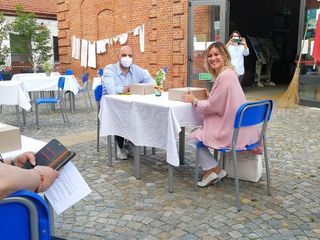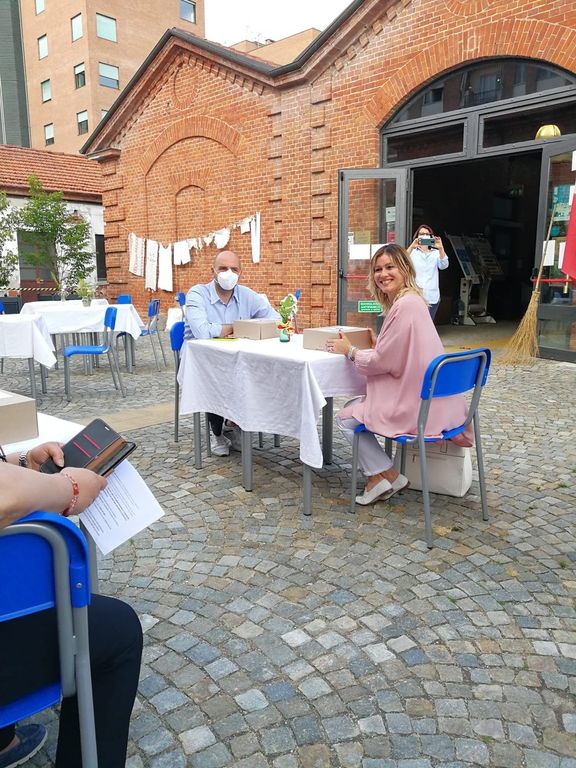 E così gli studenti del biennio di Alberghiero e Enogastronomia hanno deciso insieme ai professori di trasformare la piccola piazzetta fronte scuola in un luogo dove fare esperienza del territorio, in un'aia. Dopo un anno didattico particolare, con molte attività a distanza, per concludere il corso si è scelto di sperimentare un aperitivo offerto a insegnanti e autorità.